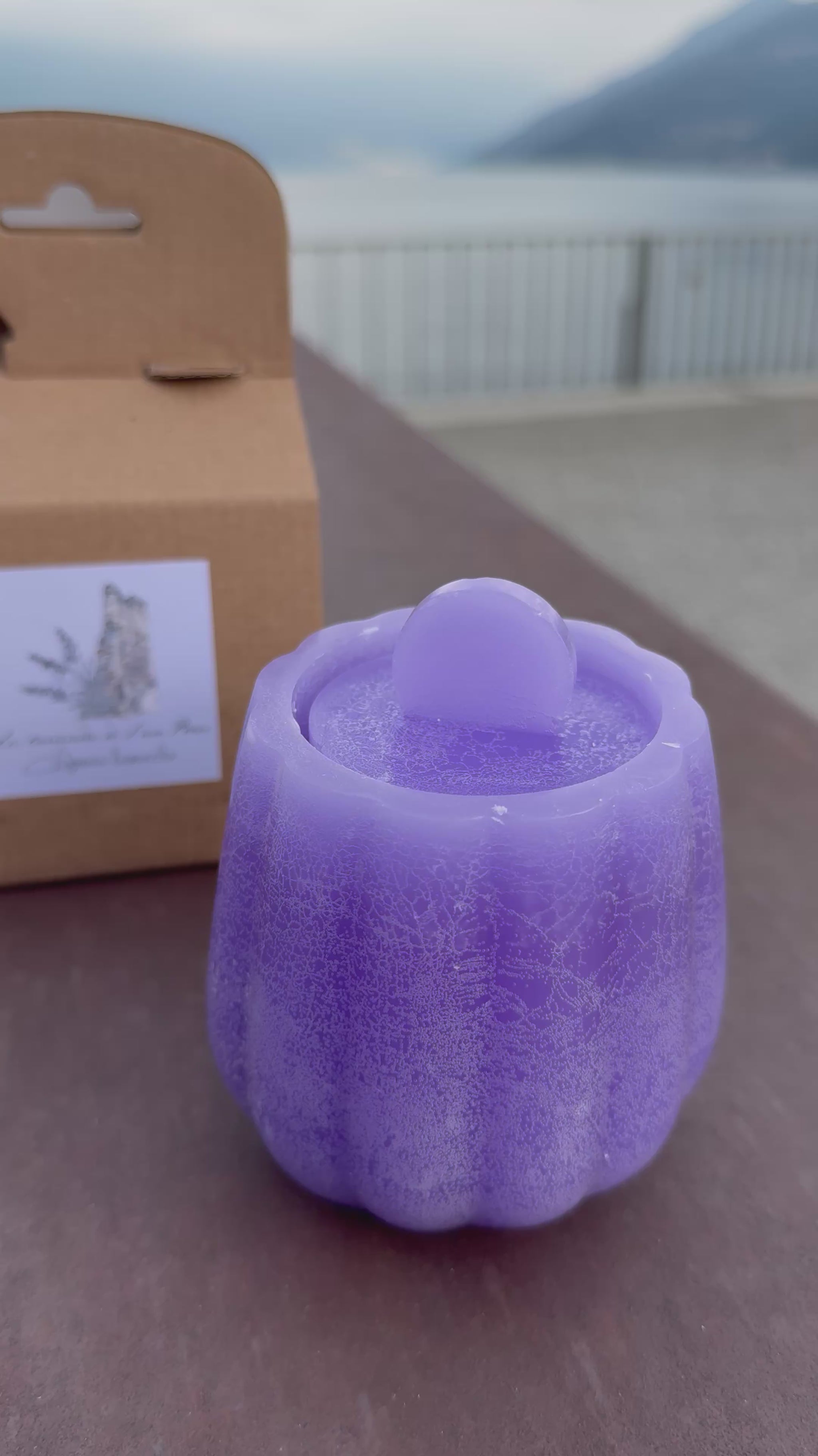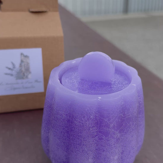 Ecco qui una candela dentro una candela, realizzata in cera su cera al profumo di lavanda. Rilascia una fragranza intensa ma gradevole.
